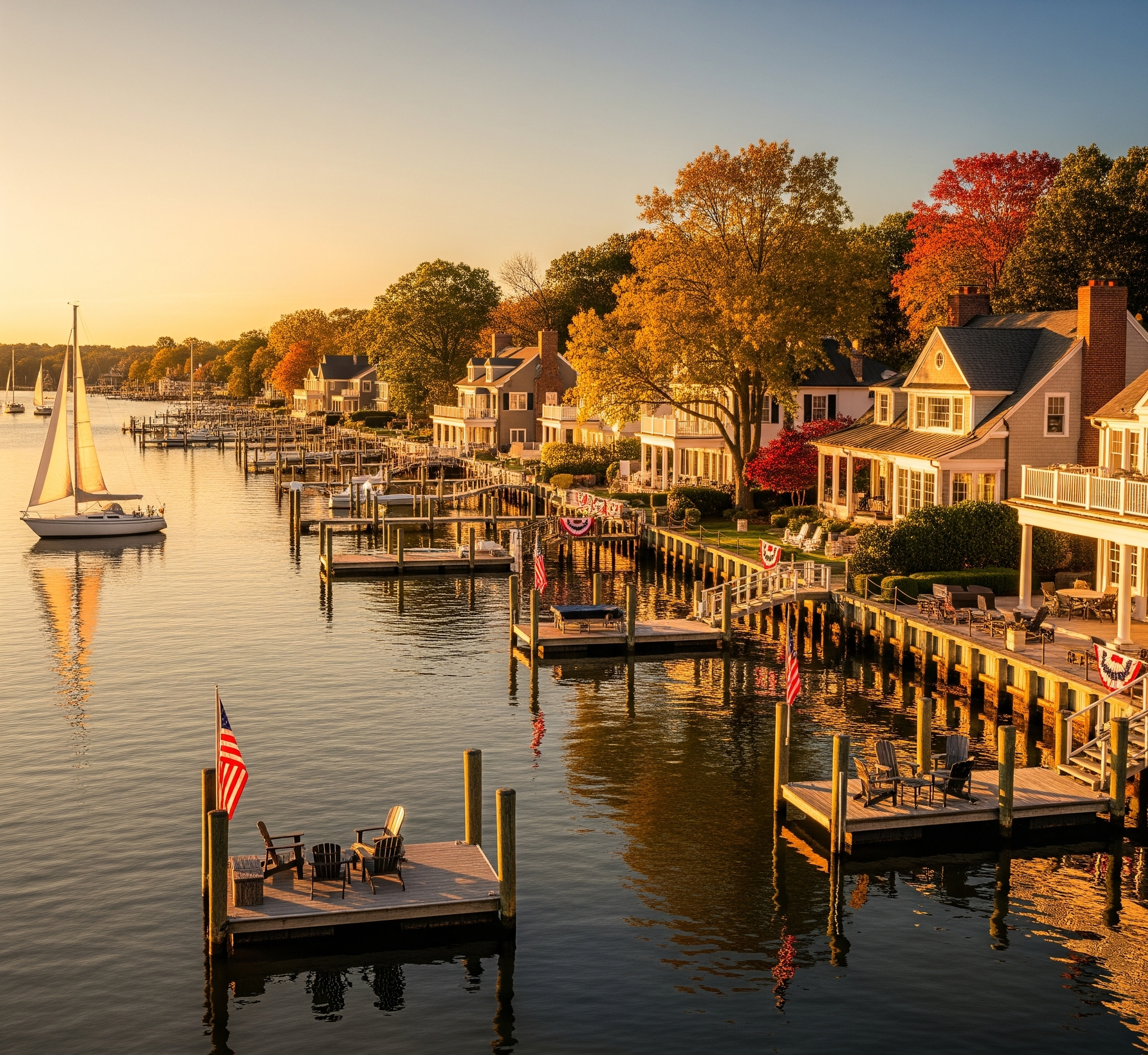 As the lush summer greenery gives way to warm autumn hues, waterfront communities along the Chesapeake Bay—particularly around Annapolis—become even more enchanting. Imagine serene still waters backed by fiery fall foliage, mild breezes, and dramatic sunsets that bring coastal charm to life.